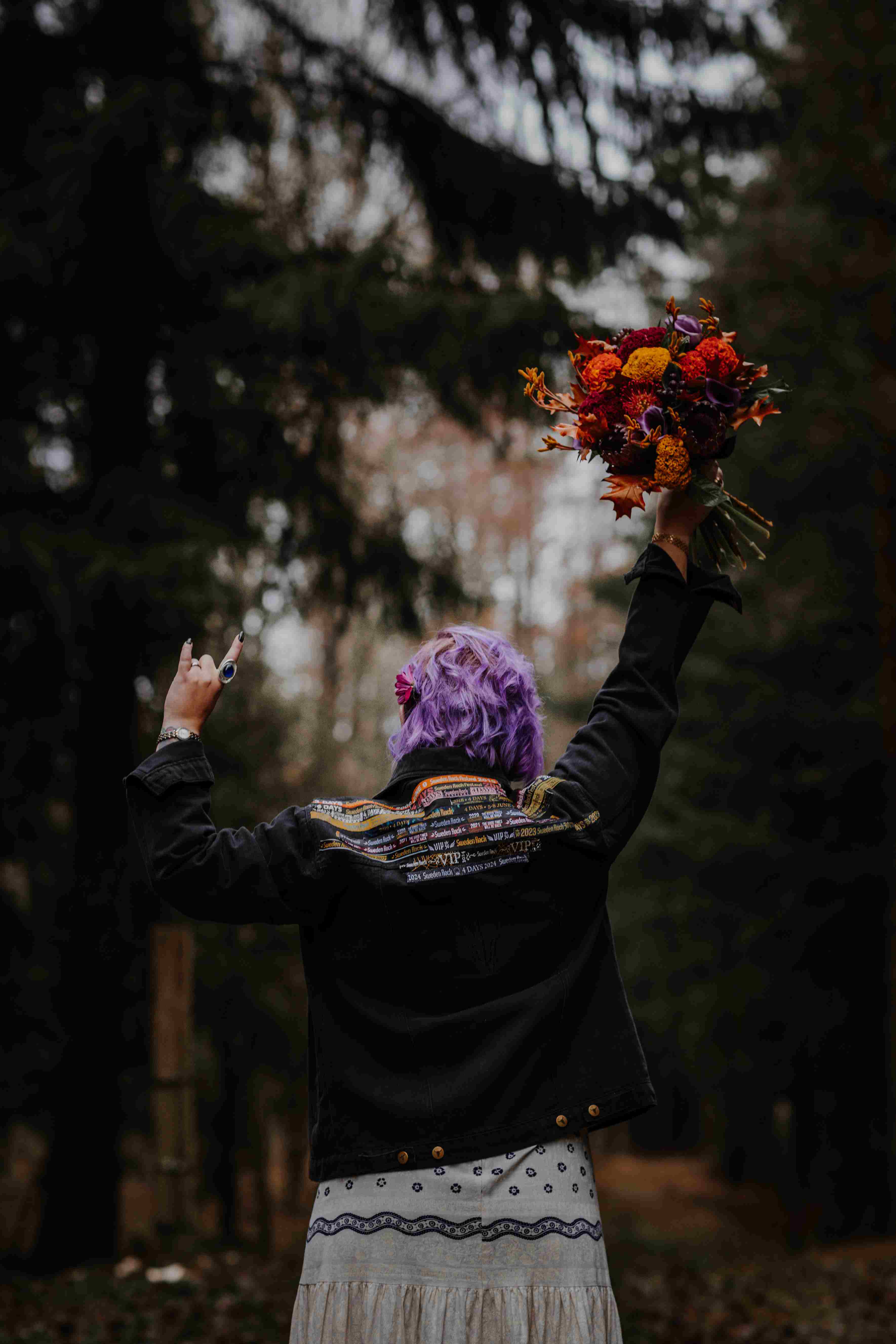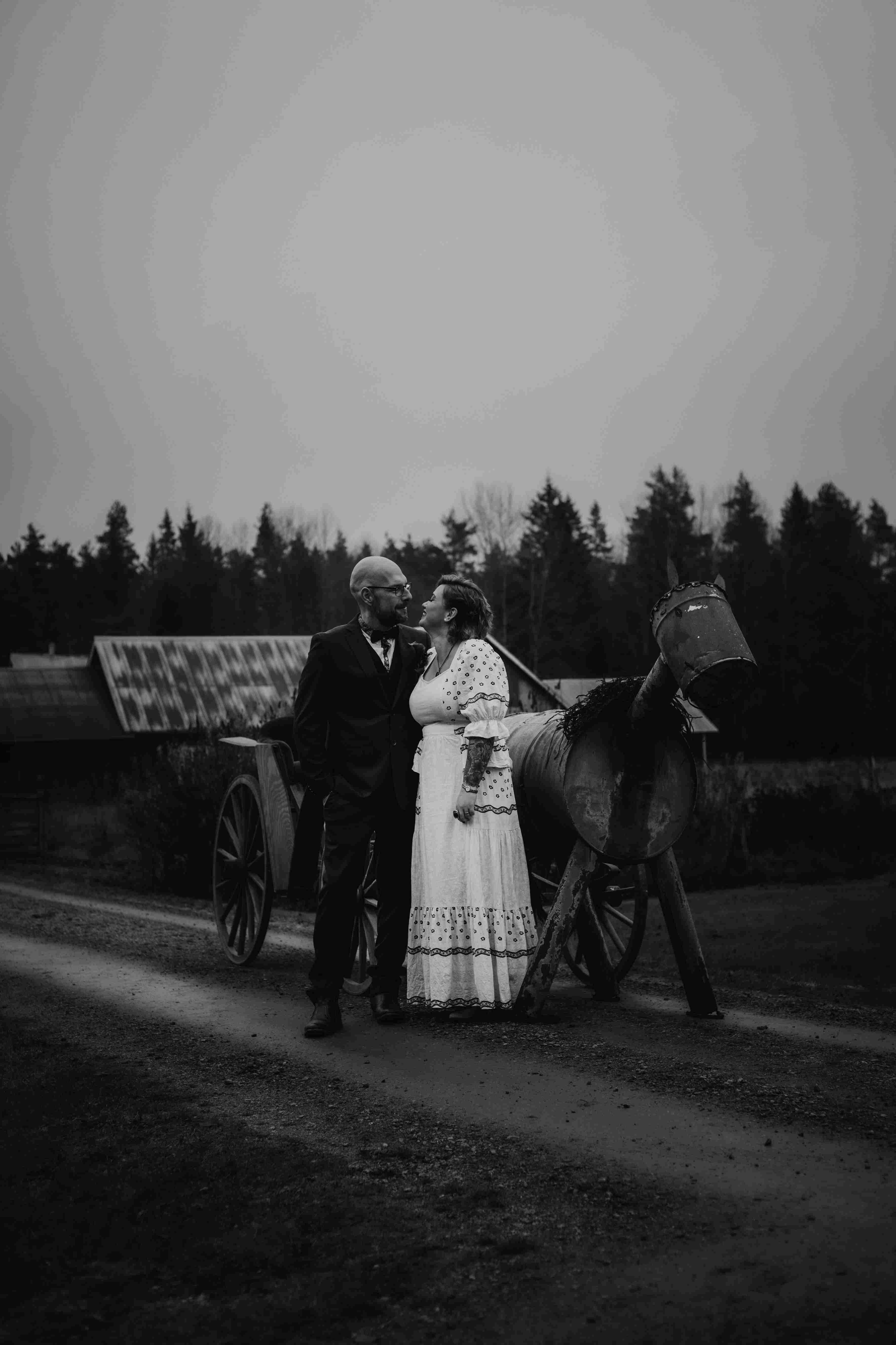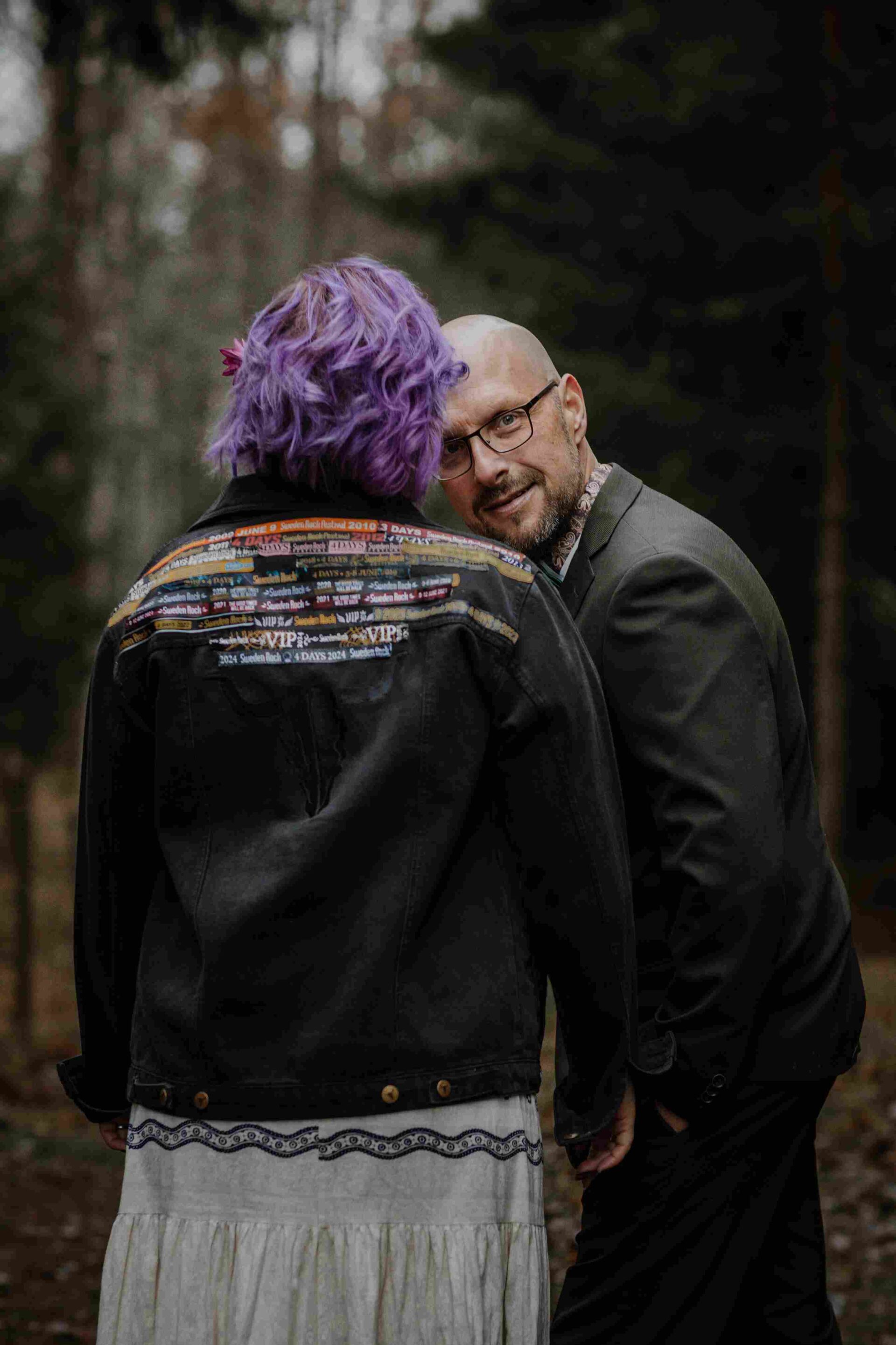 Vi fångade allt från spontana skratt till stillsamma porträtt i den natursköna miljön runt Björksätra, där skogsstigar hemmavid skapade perfekta ramar för deras kärlek. Varje bild speglar både deras stil och den rockigt magiska stämningen under dagen – en dag som verkligen var deras egen, och som jag hade förmånen att föreviga.