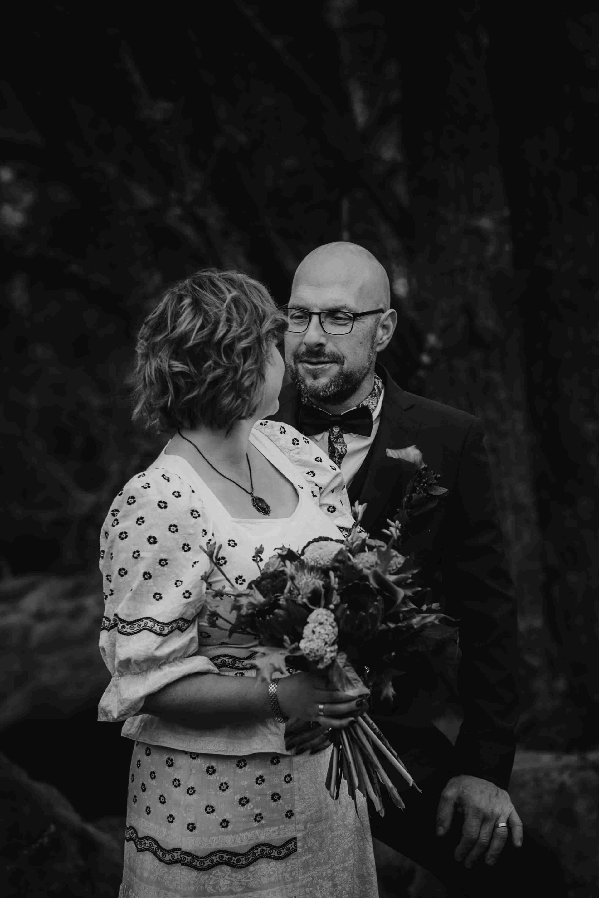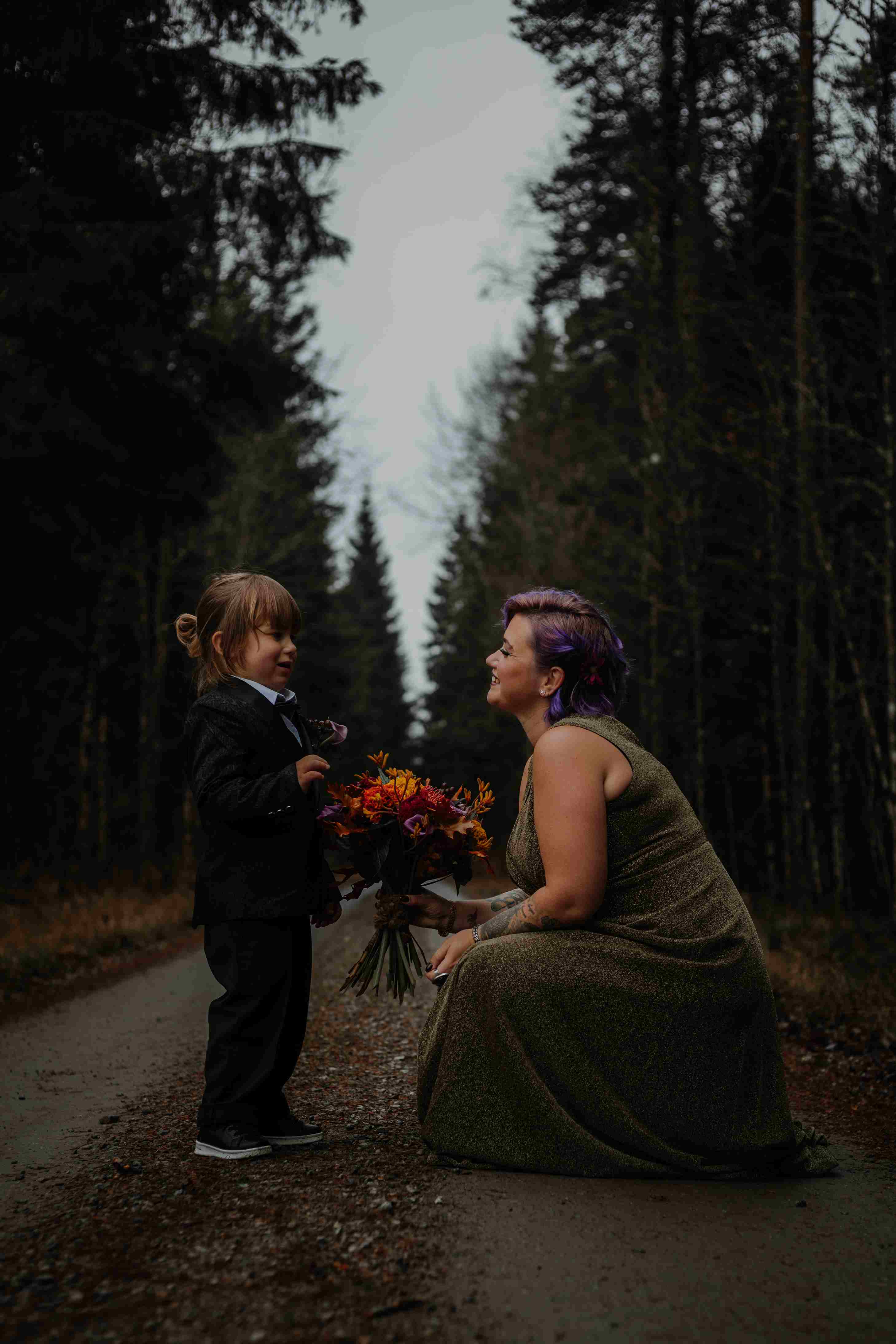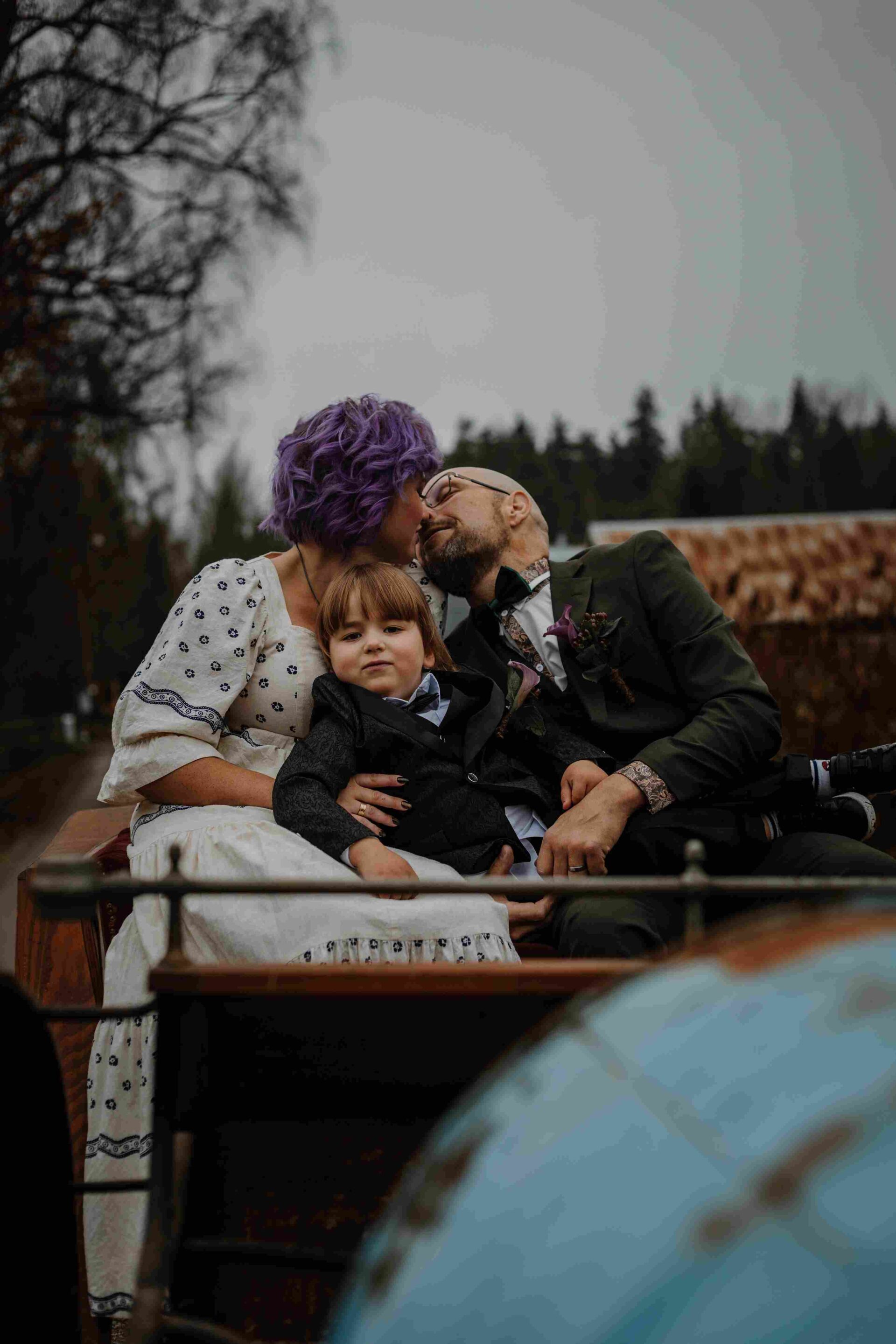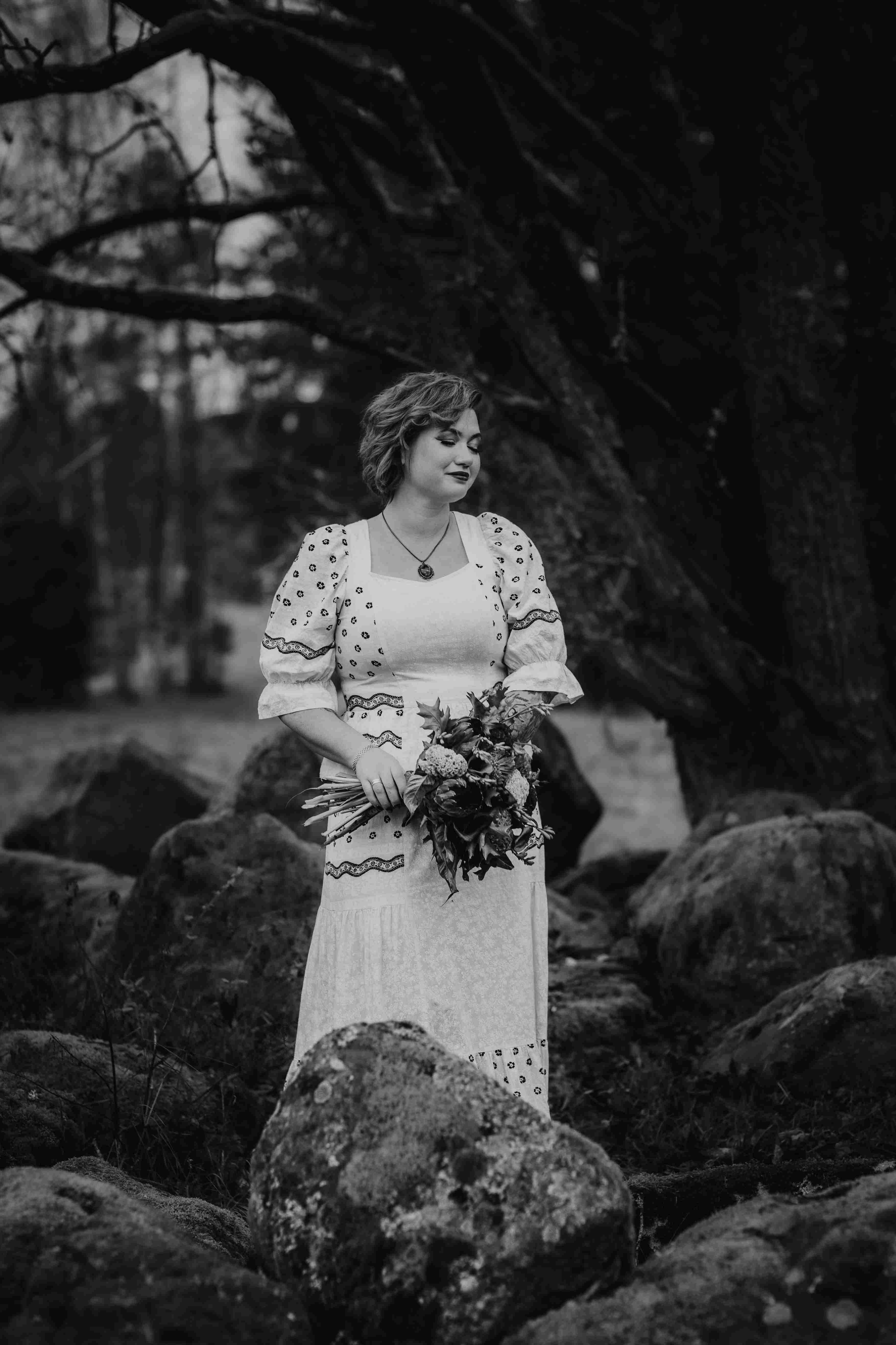 Vi fångade allt från spontana skratt till stillsamma porträtt i den natursköna miljön runt Björksätra, där skogsstigar hemmavid skapade perfekta ramar för deras kärlek. Varje bild speglar både deras stil och den rockigt magiska stämningen under dagen – en dag som verkligen var deras egen, och som jag hade förmånen att föreviga.
